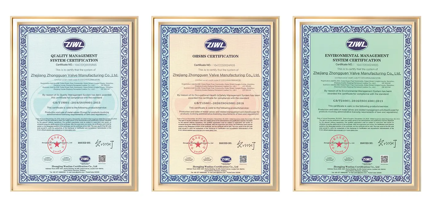 우리는 우리가 생산하는 밸브에 필요한 ISO 인증서를 보유하고 있으며 필요한 경우 WRAS 인증 밸브 시트와 함께 나비 밸브를 제공 할 수 있습니다. 우리는 우리 자신의 특허 증명서를 가지고 있으며, 우리 팀이 디자인 한 자체 모습은 합리적인 가중치와 비용 효율성을 가진 고객들에게 깊이 사랑합니다.